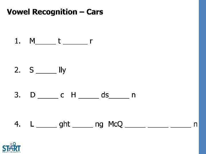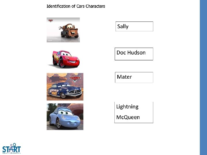 Personally-Generated Distractors Cars-Close Caption – Scene Selection 41: 19 -42: 16 Let me get this straight. I can go when this road (is, has, will) done. That’s the deal, right? That’s what (we, they, them) done did said. Ok. Outta my (house, bus, way). I got a road to finish. He’s (starting, done, sick). Done. Uh-huh. It’s only been an (hour, 6 months, year). Ah, I’m done. Look, I’m (starting, over, finished). Say thanks, and I’ll be on (your, my, someone) way. That’s all you gotta say. Whee-hoo! (We, I, Them) am the first one on the new (train, bus, road). Oh! It rides pretty smooth. It looks (great, simple, awful)! Well, it matches the rest of the (road, town, country). Who do you think you are? Look, (Doc, Sally, Mater) said when I finish, I could (stay, go, swim). That was the deal. The deal was you (wreck, fix, drive) the road, not make it worse. Now, (scrape, piece, jump) it off and start over again. Hey, (walk, look, cry) grandpa, I’m not a bulldozer. I’m a (balloon, racecar, lamp). Oh-ho-ho-ho! Is that (right, wrong, silly)? Then why don’t we just have a (colorful, little, square) race? Me and you. What? Me (then, later, and) you. That a joke? If you (swim, walk, win), you go and I fix the (computer, chair, road). If I win, you do the (hamburger, road, table) my way. Doc, what are you (going, doing, sleeping)? I don’t mean to be rude here (Sally, Mater, Doc), but you probably go zero to (one, sixty, backwards) in, like, what? Three-point-five (times, clocks, years)? Then I reckon you ain’t got (everything, apple, nothing) to worry about. You know what, old (dog, chair, timer)? That’s a wonderful idea. Let’s race!