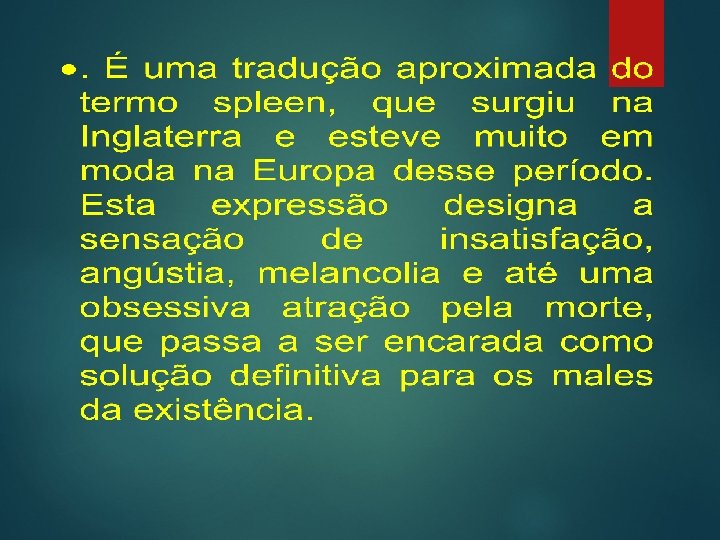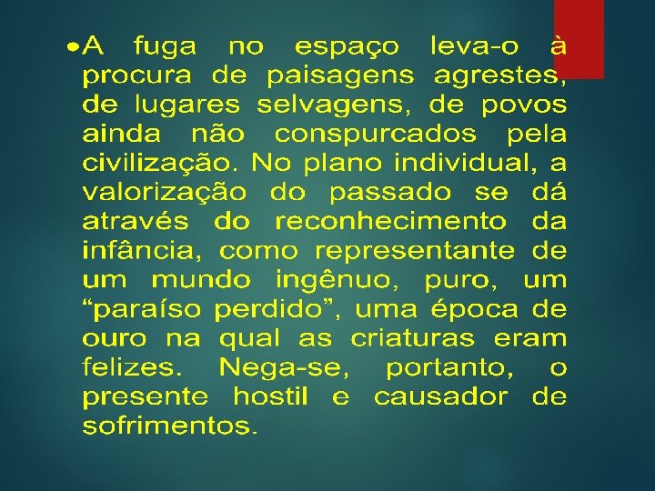 Romantismo = Surgimento Mito do bom selvagem de Rousseau; Movimento Sturm und Drang (Tempestade e Ímpeto), em 1770 na Alemanha = valorizando o folclórico, o nacional e o popular em oposição ao universalismo clássico. Os cantos de Ossian = culto à Idade Média. Publicação (1774) do romance (em forma epistolar = cartas) Os sofrimentos do jovem Werther , de Goethe = exacerbação da imaginação e transbordamento das paixões.