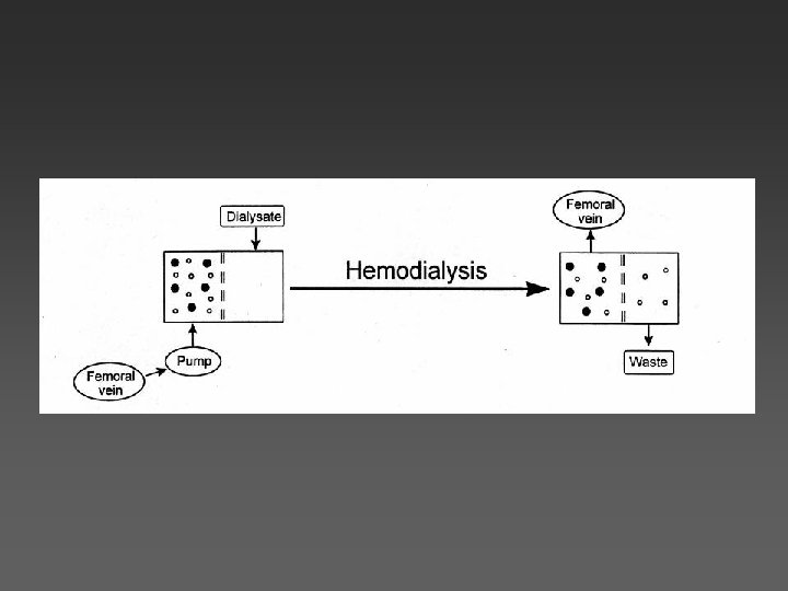 Hemodialysis, continued. . . • Newer machines have higher flow rates, better extraction ratios • Note: DON’T use the REDY system these portable HD units have very limited volume dialysate which is recycled, and CL may be very poor