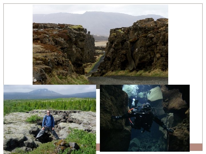 Divergent Boundaries �Boundaries between 2 plates that are moving apart or rifting �Can form in the middle of continents or on the ocean floor (seafloor spreading) �Creates rift valleys and causes volcanic activity