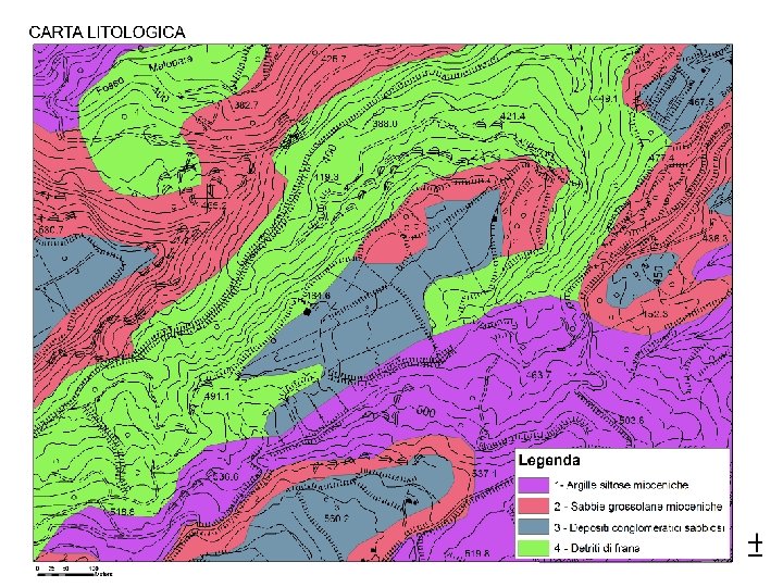 Litologia Rocce affioranti: • Sabbie grossolane da brune a biancastre con intercalazioni di arenarie. Si presentano ben costipate con una moderata resistenza all’erosione ed una elevata permeabilità. • Depositi conglomeratici e conglomeratici sabbiosi costituiti da ciottoli arrotondati eterogenei ed eterometrici. Generalmente tale deposito si presenta mediamente addensato con un moderato angolo di attrito interno. I depositi conglomeratici sabbiosi sono molto permeabili e mostrano una moderata resistenza all’erosione • Depositi argillosi siltosi con intercalazioni di livelli sabbiosi. Talvolta possono contenere dei livelli carboniosi. Generalmente contengono una bassa resistenza all’erosione ed una bassa permeabilità. • Detriti di frana si tratta di depositi argillosi siltosi che in presenza d’acqua danno luogo a movimenti gravitativi con piani di scivolamento collocati lungo le superfici di discontinuità.