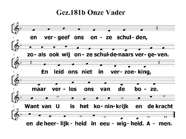 Liturgie Ps. 108: 1, 2 Lz. Ps. 119: 129 -136 Ps. 119: 3, 14, 49, 51 Viering Heilig Avondmaal: Formulier II Gz. 181 d Ld. 360 : 1, 2 Ld. 360 : 3 Lezen Avondmaalsformulier 2 Gebed Laat ons uit genade hechter groeien in het nieuwe verbond in Christus’ bloed. Dan zullen we er niet aan twijfelen dat u eeuwig onze genadige Vader bent die onze zonden ons nooit meer aanrekent en ons met alle dingen voor lichaam en ziel verzorgt als uw lieve kinderen en erfgenamen. Schenk ons ook uw genade, dat wij blijmoedig ons kruis op ons nemen, onszelf verloochenen en onze Redder belijden.