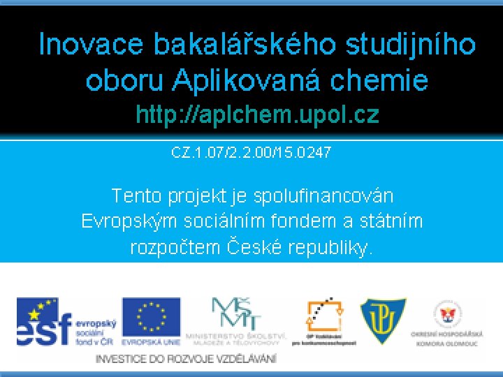 ACIDA = Léčiva, která částečně nahrazují deficit normální sekrece žaludeční kyseliny • Při nedostatečné aciditě žaludku, pokud je doprovázena dyspeptickými potížemi • V žaludeční šťávě HCl v koncentraci asi 0, 05 – 0, 1 mol/l • p. H 1, 4 – 2, 0 je optimální pro aktivitu pepsinu 10% HCl – 10 -25 kapek do sklenice vody, někdy náhrada kys. citronovou - nebezpečí poškození zubní skloviny (pití skleněnou trubičkou, vypláchnutí úst roztokem jedlé sody) Hydrochlorid betainu – sůl slabé baze a silné kys. , ve vodném prostředí uvolnění HCl - Kombinace s pepsinem Inovace bakalářského studijního oboru Aplikovaná chemie