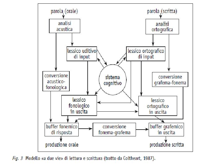 In neuropsicologia lettura e scrittura sono ambiti diversi e richiedono competenze diverse • LA LETTURA - richiede l’attivazione della fusione sillabica e sub/lessicale � • LA SCRITTURA - richiede sia la competenza sillabica, per il controllo dell’ortografia fonologica, sia l’analisi lettera per lettera. • Successivamente è richiesto anche il controllo di regole ortografiche non fonologiche.