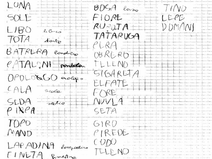 Lettura sillabica • /ALBERO/ • AL - indizi insufficienti per attivare il lessico • BE - si attiva la ricerca lessicale: Albero / Alberto / Albergo • RO - confermo l’accesso lessicale • Parola pronunciata • /ALBERO/