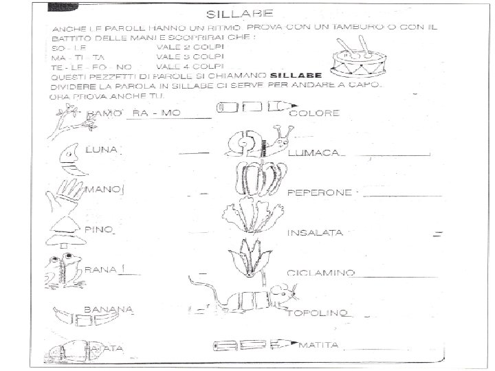 Lavorare ancora a livello sillabico Materiale tratto da “Dsa e scuola “ ed. Giunti