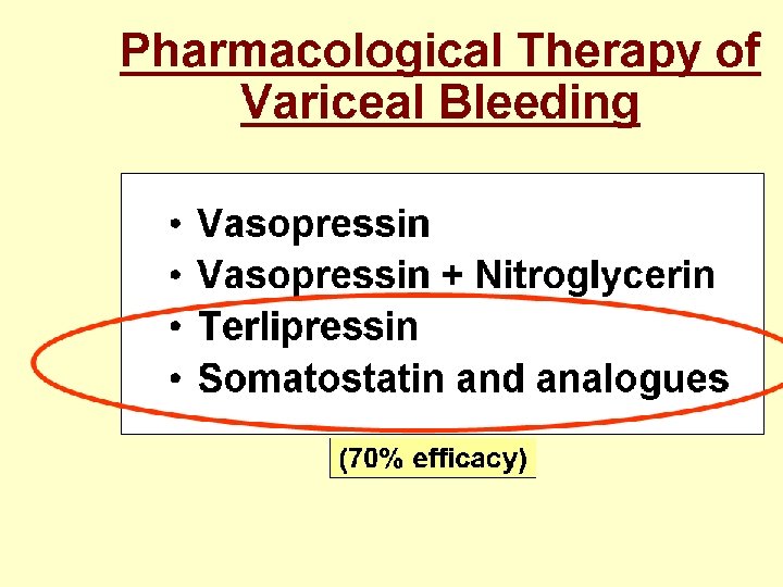 Safe vasoconstrictors available for the treatment of acute variceal hemorrhage (somatostatin, terlipressin, octreotide ). The favorable safety profile of this agent allows initiation of treatment before diagnostic endoscopy —that is, at the time the diagnosis is suspected in the treatment before diagnostic endoscopy—that is, at the time the diagnosis is suspected in the emergency department. Treatment can be continued for the next 2 -5 days when the risk of rebleeding is highest.