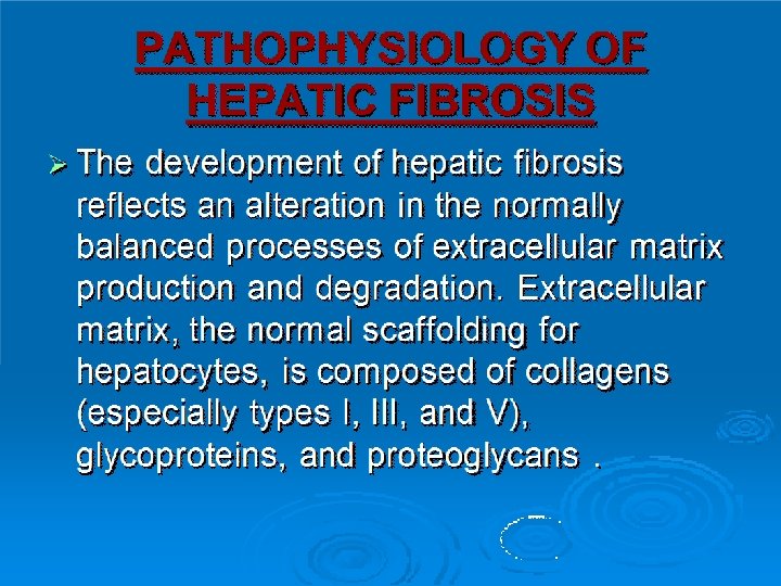 Cirrhosis represents the final common histologic pathway for a wide variety of chronic liver diseases. The progression of liver injury to cirrhosis may occur over weeks to years. Indeed, patients with hepatitis C may have chronic hepatitis for as long as 40 years before progressing to cirrhosis.