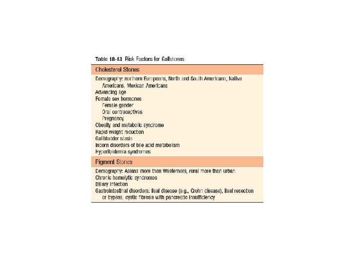 Gallbladder carcinoma • The most important risk factor for gallbladder cancer is gallstones which are present in 95% of cases. • Gallbladder cancer is at least twice as common in women than in men.