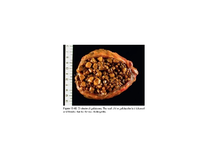 Cholelithiasis (Gallstones) • More than 95% of biliary tract disease is attributable to cholelithiasis (gallstones). There are two general classes of gallstones: cholesterol stones: containing more than 50% of crystalline cholesterol monohydrate, pigment stones: composed predominantly of bilirubin calcium salts.
