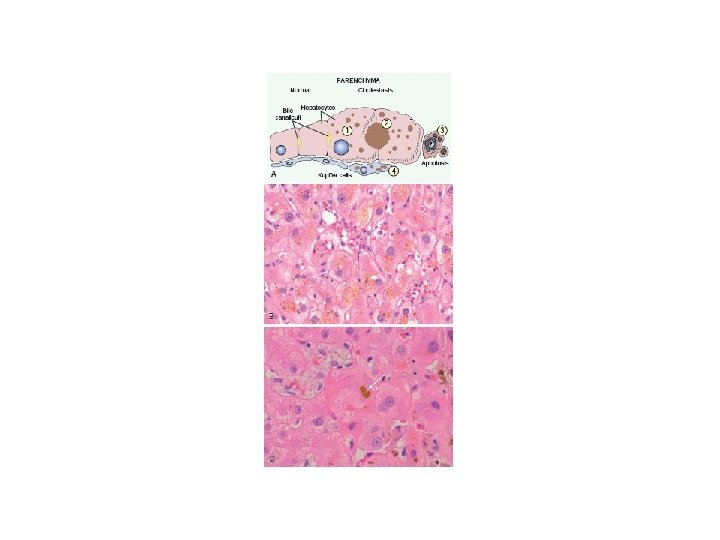• Common to both obstructive and nonobstructive cholestasis is the accumulation of bile pigment (green-brown) within the hepatic parenchyma.