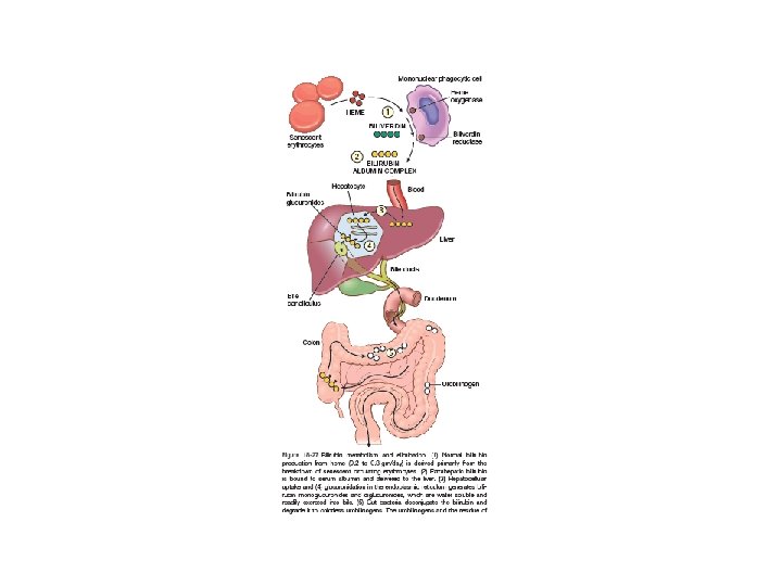 • Hepatic bile serves two major functions: (1) the emulsification of dietary fat in the lumen of the gut through the detergent action of bile salts (2) the elimination of bilirubin, excess cholesterol, xenobiotics, and other waste products that are insufficiently water-soluble to be excreted into urine. *Tissue deposition of bile becomes clinically evident as: - yellow discoloration of the skin and sclera (jaundice and icterus, respectively) due to retention of bilirubin, - and as cholestasis, when there is systemic retention of not only bilirubin but also other solutes eliminated in bile.