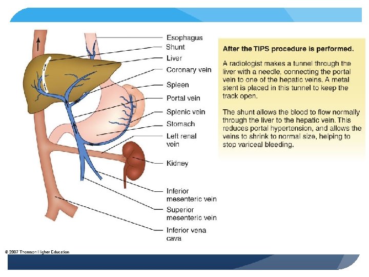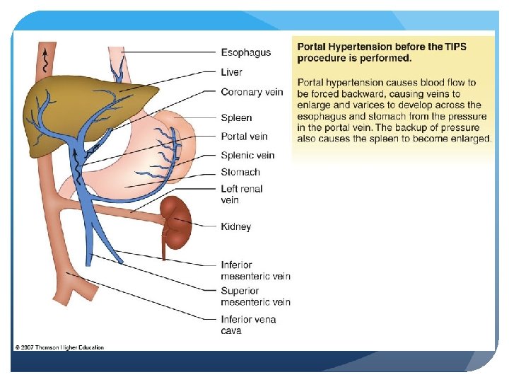 Pathophysiology of the Liver Cirrhosis – etiology Associated with alcoholism Scar tissue forms Conversion of fat to lipoprotein impaired Accumulation of fat in the liver Portal hypertension may develop (death of liver/compromised liver) Esophageal varices- streaks of bleeds in esophageal area Rupture with hemorrhage