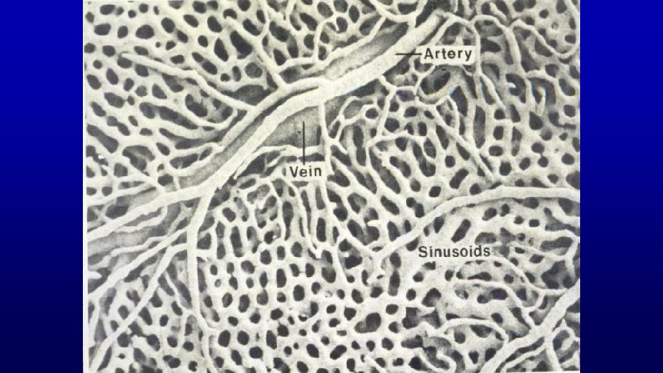 Hepatic sinusoid Hepatic parenchymal cells with microvilli Endothelial cell projecting into sinusoid Bile canaliculi with lysosomes close by the canaliculi Liver cells EM 18 Platelet Space of Disse containing reticular fibers