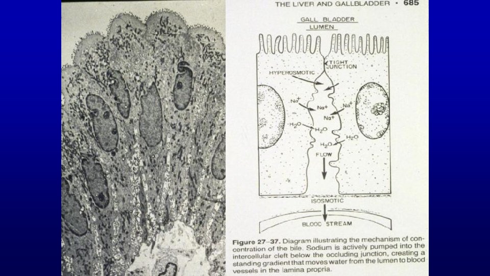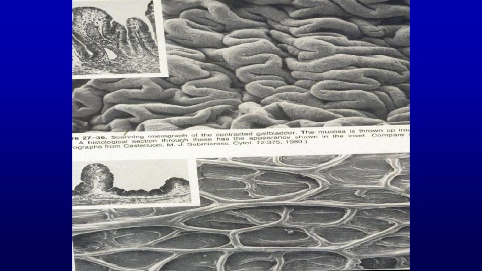 The gallbladder stores and concentrates the 155 Mucosa bile elaborated by the liver Plasma cells In the lamina propria Simple columnar epithelium