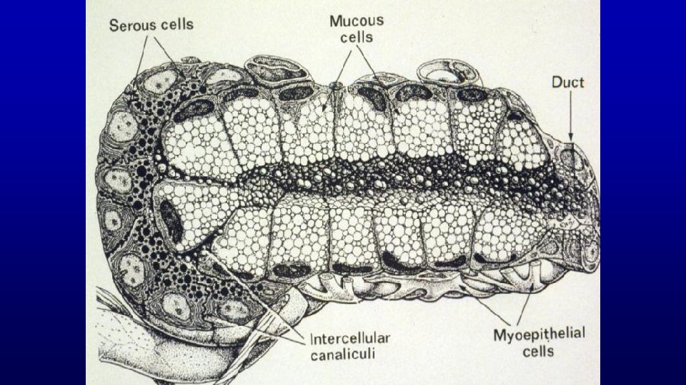 Interlobular ducts Myoepithelial cells Salivary glands 440 Lobules 440 Nerve cell bodies Histo 52 Striated ducts Serous and mucous acini Nerve 19758