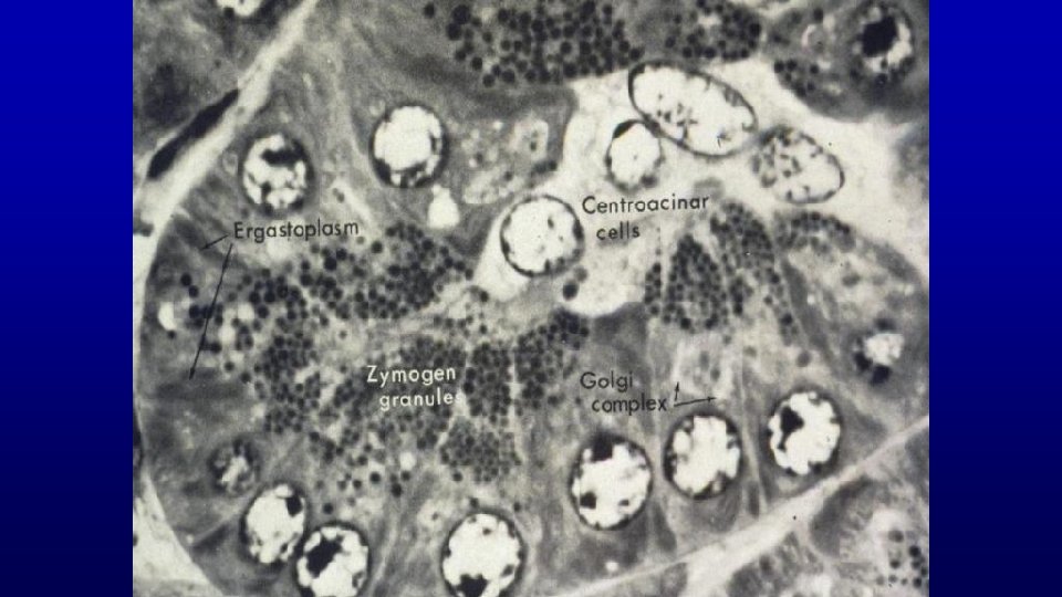 156 and 157 Pancreas 157 156 36723 Intercalated duct 36723 Secretory granules All acini are of the serous type and many contain centroacinar cells initiate the duct inside the acinus. 157