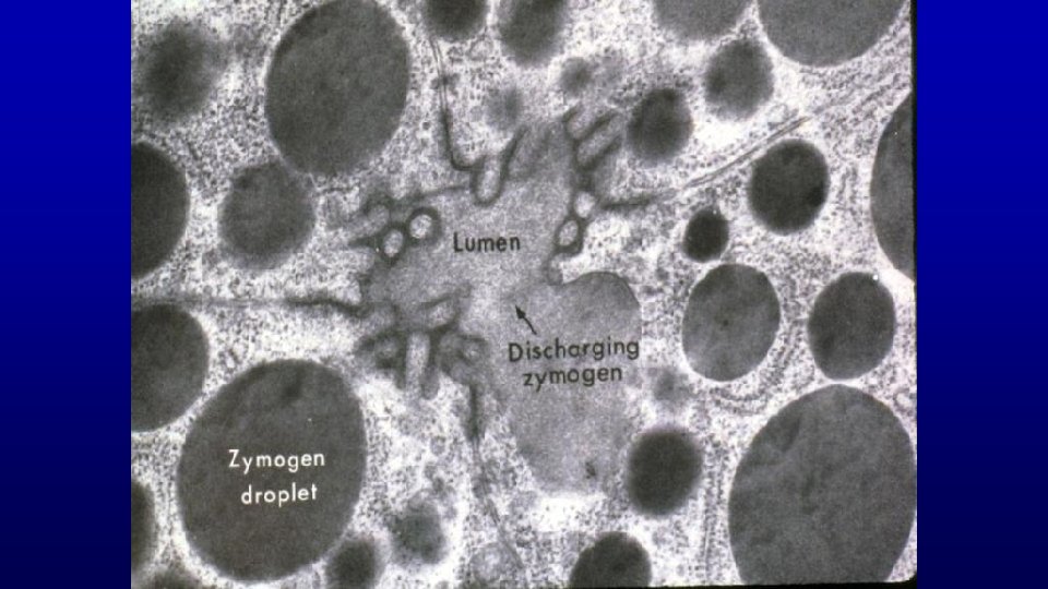 EM 1 Pancreatic acinar cell (EM 1) 1. Lumen 2. Zymogen granule 3. Vesicles 4. Central acinar cell