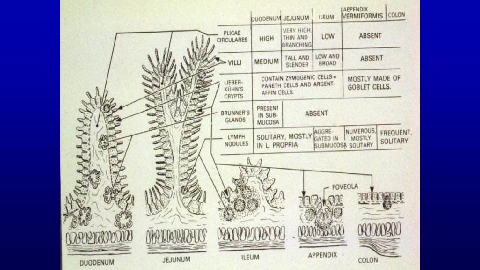 Distinguishing characteristics between the mucosa of the various parts of the stomach, intestines, and gallbladder. Mucosa = surface epithelium, lamina propera, and muscularis mucosa Cardiac stomach Fundic stomach 437 145 Pyloric stomach 141 Intestines 148 Gallbladder 155