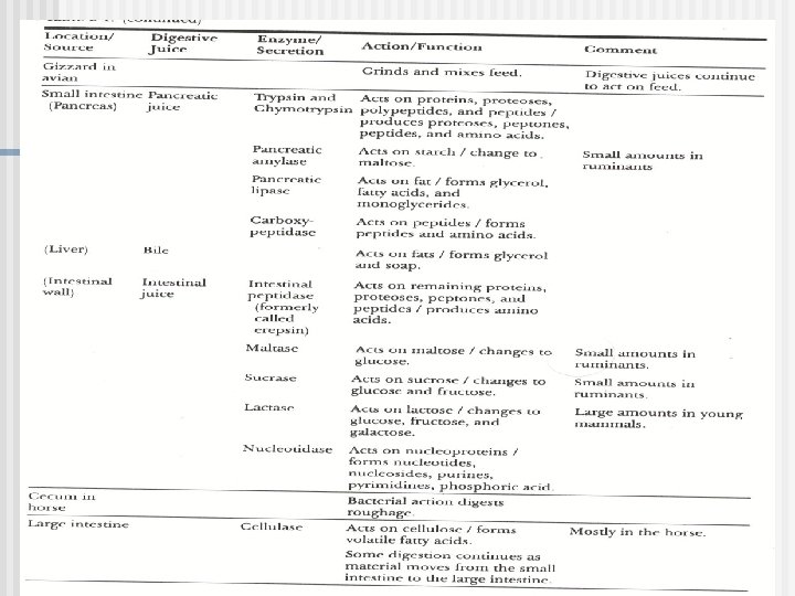 Function of the Abomasum n n n Digestion here is much the same as it is in a monogastric animal. Digestive juices are added to the feed and it is moistened. There is little or no digestion of fat, cellulose or starch. p. H level of 3. 5 -4. 0. The feed becomes highly fluid as it passes into the small intestine.