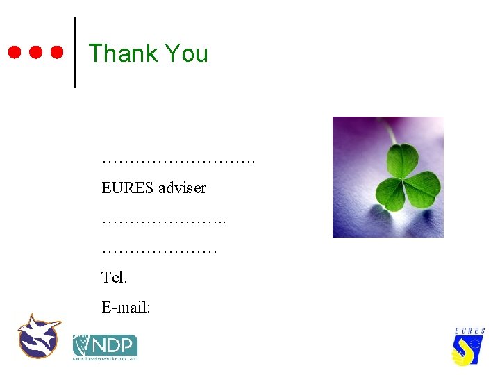 Know before You Go - Essential Preparation ¢ ¢ ¢ Contact your local EURES Adviser before you leave the country Seek pre-departure advice on “L&W” Bring relevant personal documentation, relevant ‘E’ forms and European Health Insurance Card (EHIC) Speak at least basic English Have enough money to live for 1 month at least