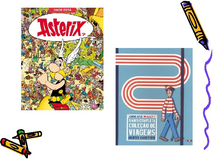 Onde está o Asterix Onde está o Wally – A mais completa coleção de viagens • Onde está o Asterix: Editora Record R$ 29, 90 (Livrarias Curitiba) • Onde está o Wally: Editora Matins Autor: Martin Handford R$ 54, 90 (Livrarias Curitiba) • Deve-se encontrar o personagem e outros elementos na figura.