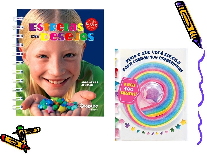 Estrelas dos Desejos • Autora Anne Akers Johnson • Editora Catapulta Editores • Livro traz histórias e motiva a criança a fazer desejos. Vem com tirinhas de papel e ensina a fazer dobraduras de estrelas. Estas estrelas podem ser coladas, transformadas em colares, pulseiras e enfeites. • R$ 19, 90 (Livrarias Curitiba)