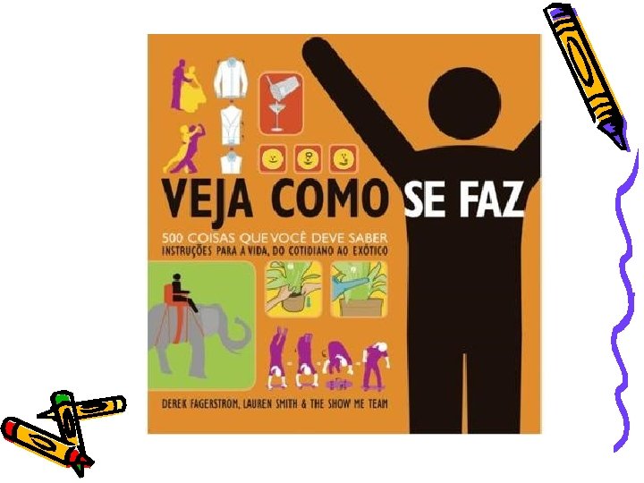 Veja como se faz – 500 coisas que você deve saber: instruções para vida • Editora Sextante • O livro traz passos de como se fazer e realizar diversas tarefas como: dançar o tango, fazer mala, vencer tocar blues, fazer sushi, lutar com um tubarão. . . • R$ 49, 90 ( Livrarias Curitiba)