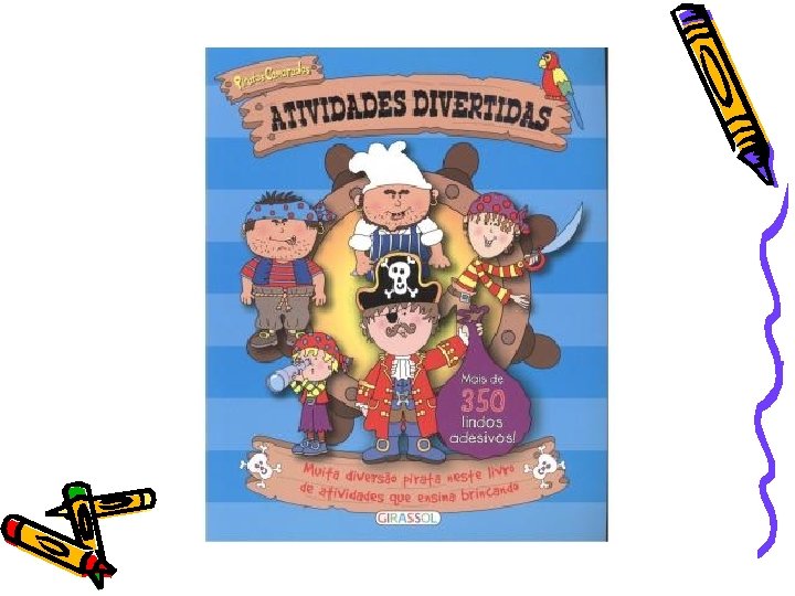 Piratas Camaradas – Atividades Divertidas • Editora Girassol • O livro contem adesivos que devem ser colados nos lugares certos. Tem também diversas atividades como: procurar desenho, cópia fragmentada, escrever histórias, caça-palavras, cores e formas, conceito de bom e mau, experiências e atividades • R$ 22, 90 ( Livraria Saraiva)