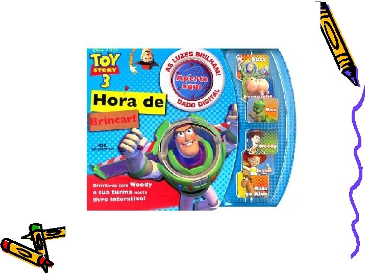 Toy Story 3 – Hora de Brincar • Editora Melhoramentos • Livro interativo que vem com um dado eletrônico. Tem diversas atividades como: perguntas, procurar o que está sendo solicitado, mudar o final da história e jogos • R$ 41, 00 (Livraria Saraiva)