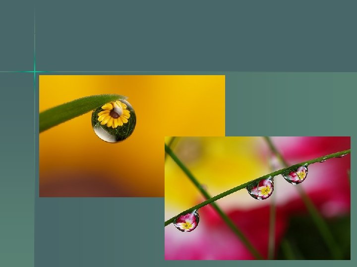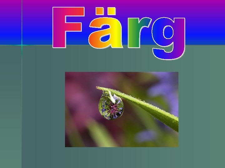 Varför olika färg på saker? n Olika föremål absorberar olika färger (våglängder). När en färg absorberas så är det ofta komplementfärgen man ser. T ex om grönt absorberas så ser man en rödaktig färg. n Ett objekt som reflekterar alla våglängder uppfattas som vit. n Ett objekt som absorberar alla våglängder uppfattas som svart.