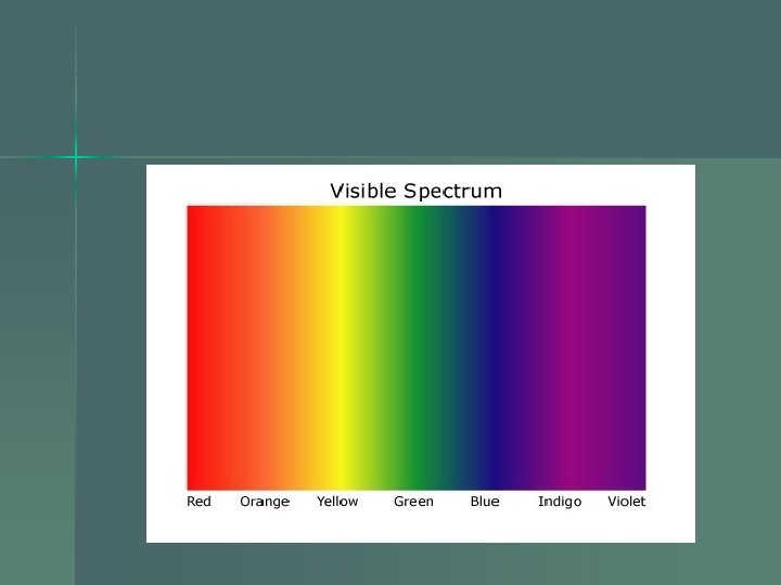 Synbart ljus för människor n Med våra ögon kan vi se ljus som har våglängderna 400 – 700 nm. (1 nm = 1 nanometer = 1 miljarddels meter =0, 00001 m = 0, 000001 mm) n Ögat uppfattar olika våglängder som olika färger.