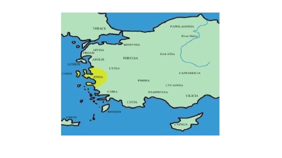 • Milattan önce 1200'de Batı Anadolu'da oluşturulan bir medeniyettir. Batı Anadolu da kabaca Gediz Nehrinden, Küçük Menderes Nehirlerine kadar ki kıyı bölgesine İyonya adını vermiştir.