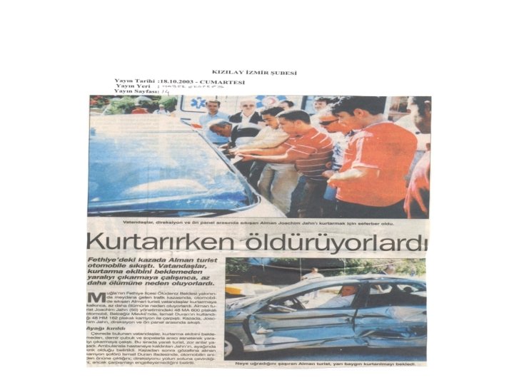 İLK YARDIMIN ÖNEMİ • Tüm kazalarda ölümlerin %10’u ilk 5 dakikada %45’i ilk 30 dakikada olmaktadır. • Dünyada sadece trafik kazalarında bir yılda 1. 2 milyon ölüm 20 -50 milyon yaralanma ve sakat kalma milyonlarca lira ekonomik kayıp olmaktadır.