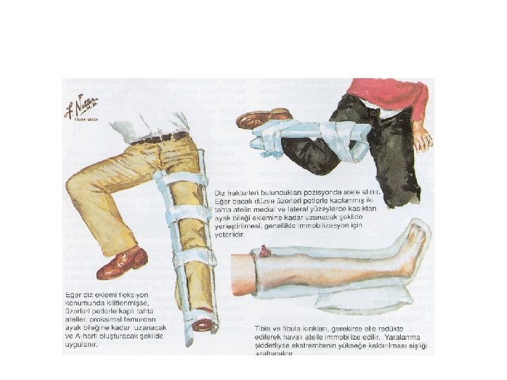 KIRIĞIN YOL AÇABİLECEĞİ OLUMSUZ DURUMLAR x Kırık yakınındaki damar, sinir, kaslarda yaralanma ve sıkışma. ( Kırık bölgede nabız alınamaması, soğukluk, solukluk, aşırı hassasiyet ) x Parçalı kırıklarda kanamaya bağlı şok. x Açık kırıklarda enfeksiyon riski GÖRÜLEBİLİR.