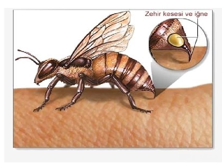 ARI SOKMASINDA İLK YARDIM • Arının soktuğu bölge yıkanır. • Derinin üzerinden arının iğnesi görünüyorsa çıkarılır. • Soğuk uygulama yapılır ( soğuk su ). Amonyak vb. kullanılmaz. • Eğer ağızdan sokmuşsa, solunumu güçleştiriyorsa kişinin buz emmesi sağlanır. • Ağız içi sokmalarında ve alerjisi olanlar için tıbbi yardım istenir.