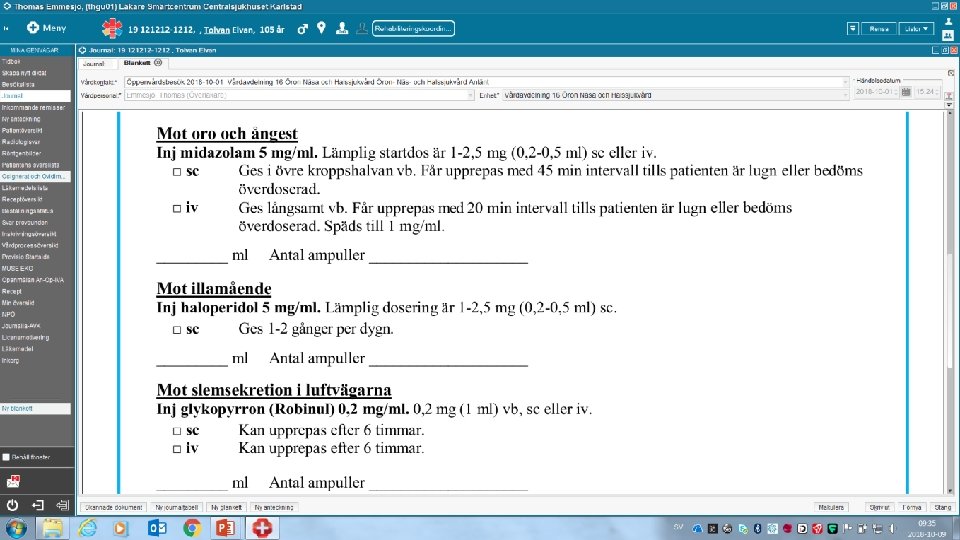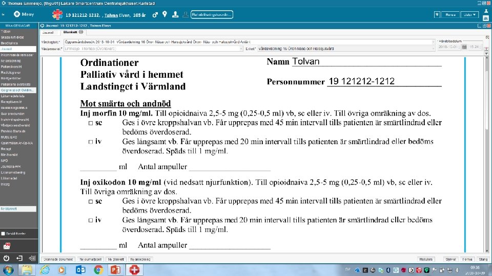 REKOMMENDERADE LÄKEMEDEL • PALLIATIV VÅRD I HEMMET VANLIGTVIS SUBKUTANA INJEKTIONER • LÄKEMEDEL KAN OCKSÅ GES INTRAVENÖST • FÖR MER INFORMATION OM DOSERING OCH UPPREPANDE AV DOS SE BLANKETTEN ORDINATIONER PALLIATIV VÅRD I HEMMET I COSMIC Thomas Emmesjö Smärtcentrum CSK 2021 -02 -18