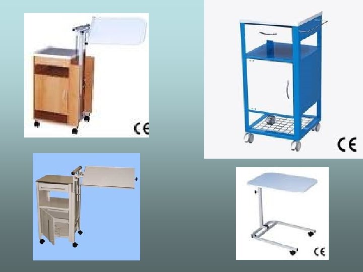 Pomůcky doplňující lůžko - usnadňující pobyt na lůžku v hrazdička v žebříček v uzdička - k zabezpečení nemocných v postranice - zpříjemňující pobyt na lůžku v jídelní stolek v stojan na knihy v kapsář na drobné předměty v signalizační zařízení v antidekubitární podložky