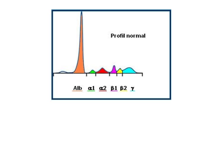 Variation des globulines ü Augmentation – Carence martiale – Hypothyroïdie – Obstruction biliaire (CBP): défaut de catabolisme hépatique du C 3 – Pics Ig. A ou Ig. M très importants ü Diminution – Insuffisance hépatique – Entéropathies ß 1 : transferrine, CRP – Syndrome néphrotique ß 2 : C 3 et C 4 du – Malnutrition complément, fibrinogène