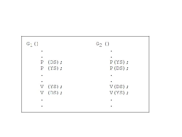 Aygıt Tahsislerinde Ölümcül Kilitlenmeler • DVD okuma/yazma sürücülerinin kümeleri gibi adanmış aygıt gruplarını kullanan sistemlerde ölümcül kilitlenme meydana gelebilir. • Bir kurumda iki kullanıcının her birinin bir program çalıştırdığını (P 1 ve P 2) ve her iki programın da sonunda dosyaları bir diskten diğerine kopyalamak için iki DVD sürücüsüne ihtiyacı olduğunu varsayalım. Bununla birlikte, sistem küçüktür ve iki program başlatıldığında, yalnızca iki DVD-R sürücüsü kullanılabilir ve bunlar “istendiği şekilde” tahsis edilir. Yakında aşağıdaki dizi gerçekleşir: 1. P 1, sürücü 1'i ister ve alır. 2. P 2, sürücü 2'yi ister ve alır. 3. P 1, sürücü 2'yi istiyor ancak engelleniyor. 4. P 2, sürücü 1'i ister ancak engellenir. • Her iki iş de devam edemez, çünkü her biri diğerinin sürücüsünü bitirmesini ve serbest bırakmasını bekler; Benzer bir olay dizisi, herhangi bir özel cihaz grubunu kilitleyebilir.