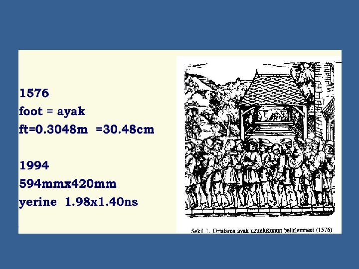 Ölçmenin tarihçesi • Önemli mühendislik edimleri, bugünkü Irak’ta Dicle ve Fırat nehirleri arasındaki bölge olan Mezopotamya’nın eski sakinlerine çok şey borçludur. İlk tekerlekli arabanın bu bölgede görüldüğü söylenmektedir. Çok eski ve gizemli bir halk olan Sümerler, yazılı tarihin başlangıcında Güney Mezopotamya’da, dünyanın ilk mühendislik uygulamalarını oluşturan kanallar, tapınaklar ve surlar inşa etmişlerdir. Mezopotamyanın diğer sakinleri Babiller ve Asurlular ise yine mühendislik adına önemli eserler vermişlerdir. • Bu döneme ait, bulunan kil tabletlerdeki kayıtlar M. Ö. 2000 yıllarında “usturlap” denen bir açı ölçüm aletinin astronomik gözlemlerde kullanıldığını göstermektedir. Bir dereceli daire ve bir görme kolundan ibaret olan bu alet, Mezopotamyalılar tarafından kullanılan 60’lık sayı sistemine dayalıydı. Bu sistem, zaman ve açı ölçümlerinde bugün hala kullanılmaktadır.