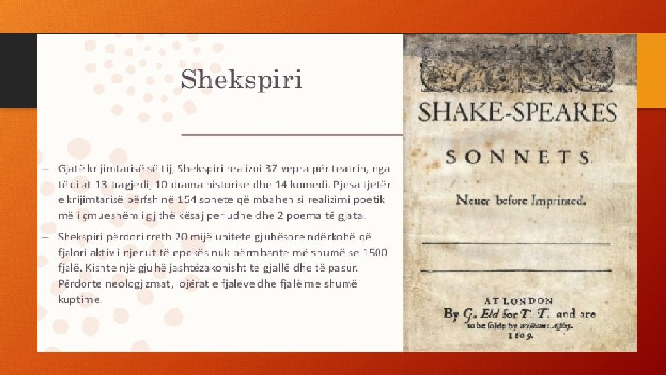 Tema mësimore: 1. Teatri elizabetian 2. Uilliam Shakespear (Uilliam Shekspir)