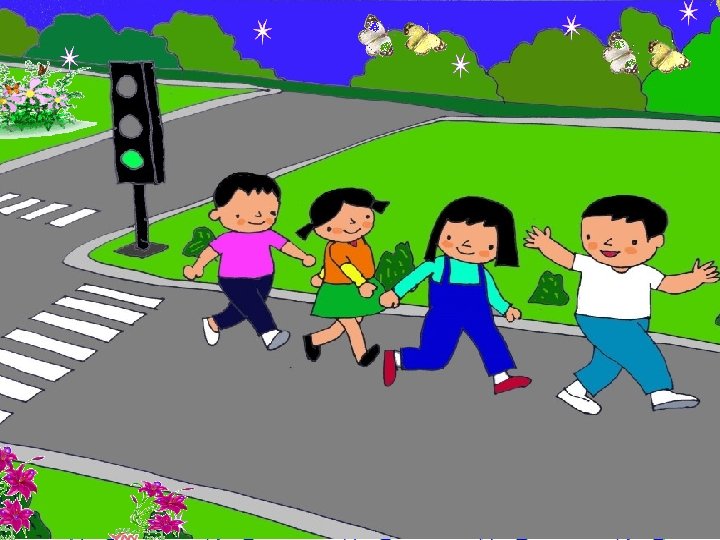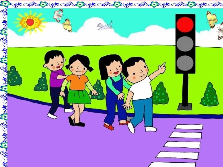 - Cho trẻ hát bài hát : “Em đi qua ngã tư đường phố” - Các con vừa hát xong bài hát gì? - Các con đã nhìn thấy đèn giao thông bao giờ chưa ? - Vậy các con thấy đèn gì dừng lại? - Đèn gì được đi? -À đúng rồi khi đi qua ngã tư đường phố có tín hiệu đèn giao thông màu xanh bật lên thì mới được qua đường, tín hiệu đèn vàng thì chậm lại, đèn đỏ thì dừng lại.
