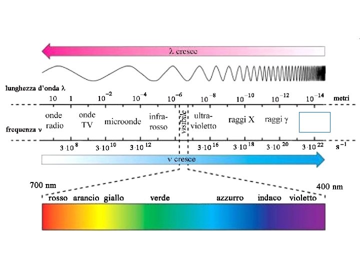 Quando si ascolta la RADIO, si guarda la TV, si manda un SMS, si cuoce qualcosa nel forno a microonde, … si sta usando energia ELETTROMAGNETICA L’energia e. m si propaga mediante onde che hanno uno spettro ampio, che varia da lunghezze d’onda molto grandi (onde radio) a lunghezze d’onda molto piccole (raggi gamma). L’occhio umano percepisce solo una piccola porzione di questo spettro chiamata luce visibile.