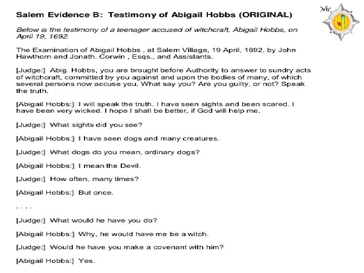 History/Social Studies What do the Salem Witch Trials reveal about life in Massachusetts at the end of the 17 th century?