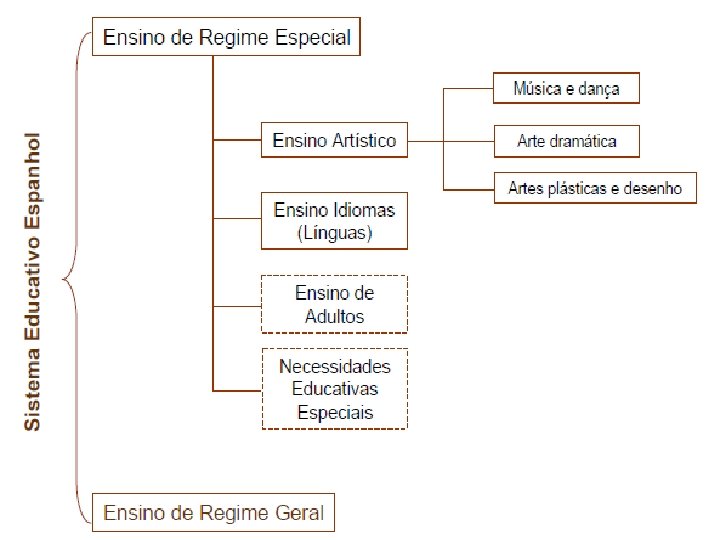 • A formação secundária é dividida entre o ensino secundário obrigatório, o bacharelato e em programas de garantia social. • Ensino Secundário Obrigatório (ESO): é um ensino gratuito e obrigatório para completar o ensino básico. Depois da educação primária, é obrigatória a frequência durante quatro anos. Nesta fase, o aluno começa aos 12 anos e, normalmente termina aos 16.