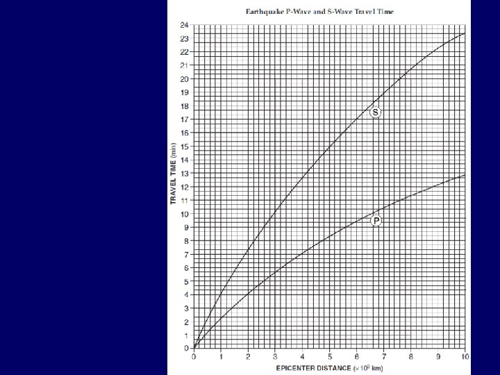 2) Take a piece of paper and place the edge next to the travel-time scale on the graph. (ESRT p. 11; P-wave, S-wave chart).