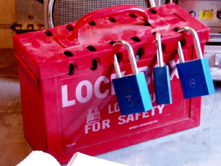 Lockout ¨Prevents release of hazardous energy ¨Lock placed on appropriate energy isolating device that is in the off or closed position