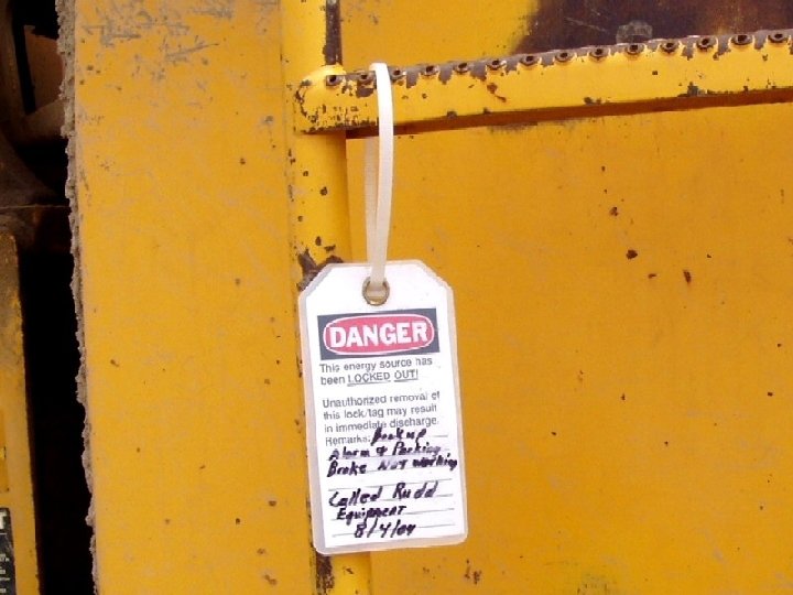 Tagout ¨Identifies problem ¨Identifies lockout date ¨Identifies person ¨Used by itself only when cannot be locked out