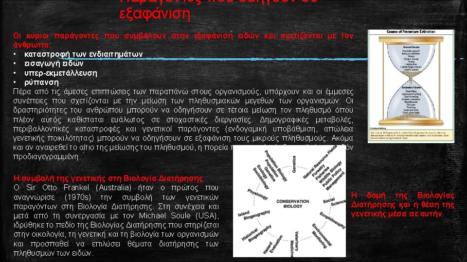 BRIEF THEORETICAL BACKGROUND Conservation and the genetics of populations Why we assess the impact of extent habitat loss with mt. DNA molecular markers? Ø mt. DNA is relatively easy to work with Ø Individuals usually possess many mitochondria that share a single predominant mt. DNA sequence Ø Small size, conserved arrangements of genes Ø High mutation rate Ø Lack of recombination Genetic threats